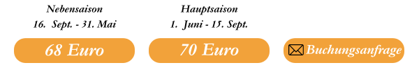 - Die Preise verstehen sich pro Nacht. Kinder bis 2 Jahren sind frei, von 3 bis 18 Jahren kommen 3 €/Tag in der Nebensaison und 4€/Tag in der Hauptsaison hinzu (zzgl. der ortsüblichen Kurtaxe ab 17 Jahren).